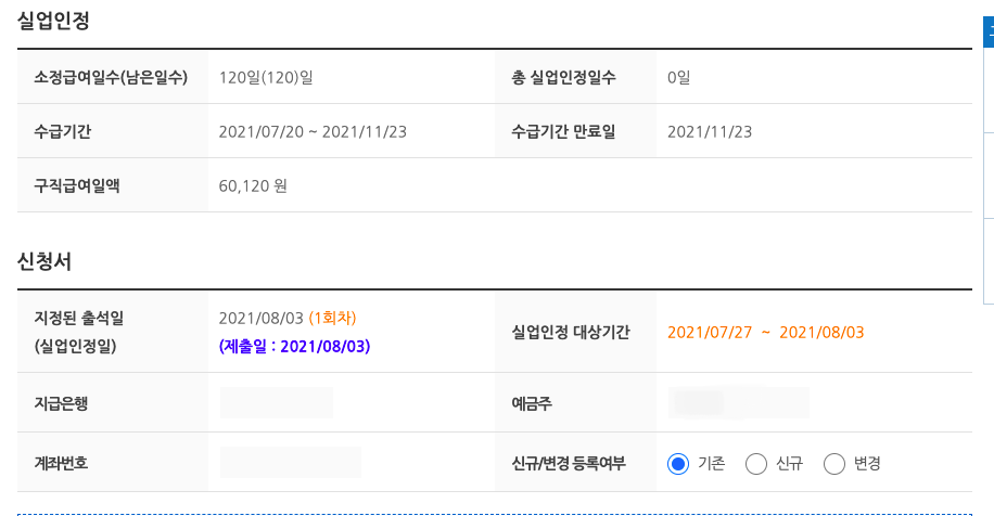 센터에서 실업급여 신청할 때 왠지 계좌번호를 썼던 것 같은 느낌이 들었는데, "신규" 체크하고 그냥 내가 받고 싶은 계좌 통장 사본 등록하면 된다.